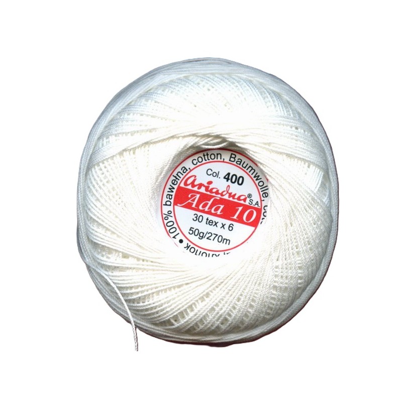 Cotton crocheting yarn "Ada 10" white/1pc.