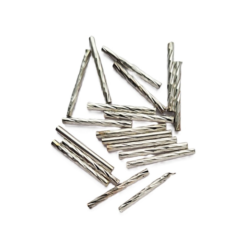 Metallic twisted bugles 2x20mm, silver/20 pcs.