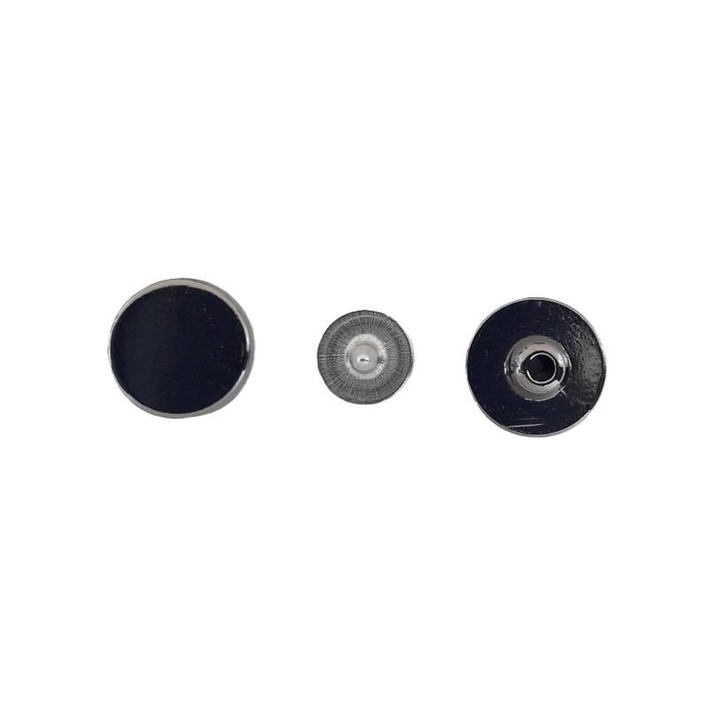 19600 Kniedė lieta plokščia kepurėle, kepurėlės skersmuo - 12 mm, storis - 2 mm, spalva - tamsintas nikelis (grafitas), tvirtinamos vinuku, jo ilgis - 8 mm, pakuotėje - 20 vnt. Kaina už pakuotę.