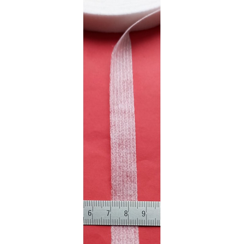 5376 Prasiūto flizelino klijuojama sutvirtinimo juostelė, 15 mm pločio, spalva - balta. Klijuojama lygintuvu arba presu, taškinis padengimas klijais. Klijavimo temperatūra - 125oC. Pakuotėje - 100 m. Kaina už pakuotę.