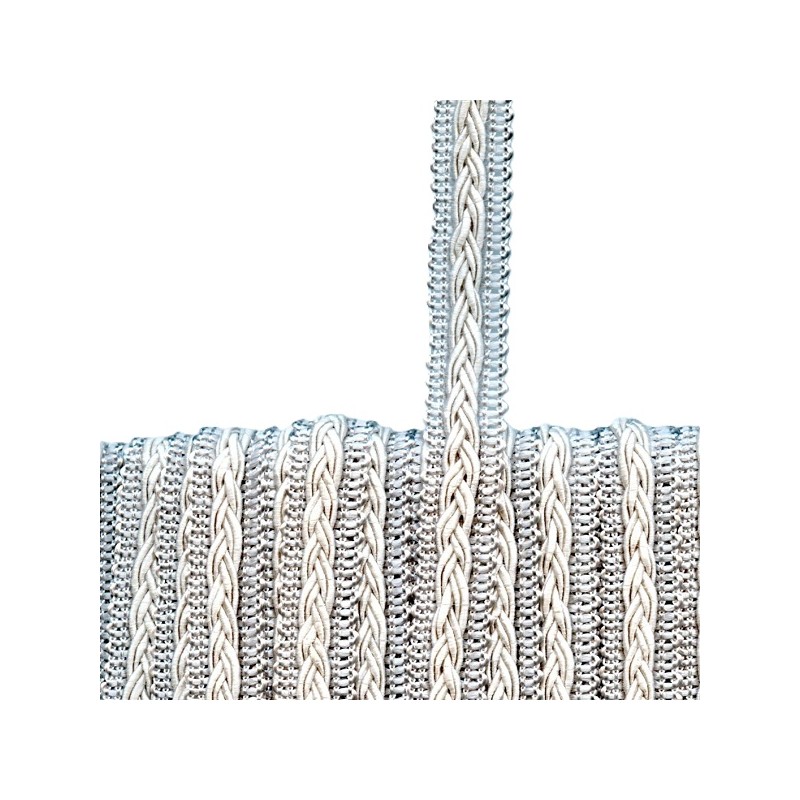 18430 Dekoratyvinė juostelė art.02075.341. Spalva - pilka. Plotis - 12 mm. Sudėtis: 85% acetatas, 12% medvilnė, 3% poliamidas. Kaina už 1m. Parduodamas kiekis kartotinas 1m.