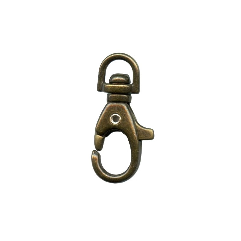 17945 Karabinas art.KR304/08. Kilpos vidinis plotis - 8 mm, karabino išorinis ilgis - 35 mm, plotis - 15 mm, žalvario spalva. Kaina už 1 vnt.