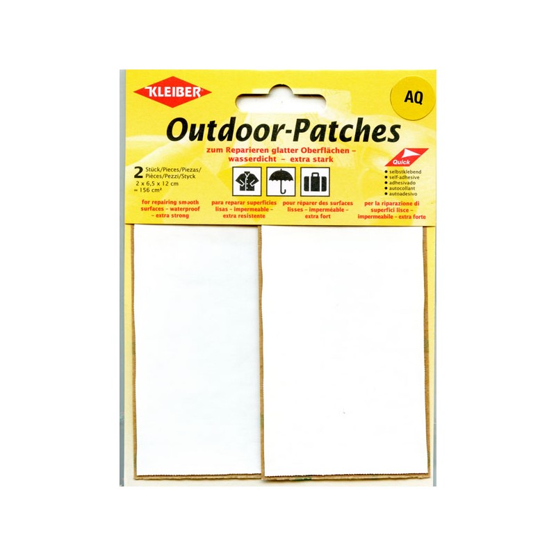 2384 Lipnūs neperšlampantys labai stiprūs lopai art.432-02, lopų plotas - 156 kv.cm (2 x 6.5 x 12 cm), spalva - balta. Sudėtis: 72% polivinilchloridas, 20% poliesteris, 8% poliuretanas.