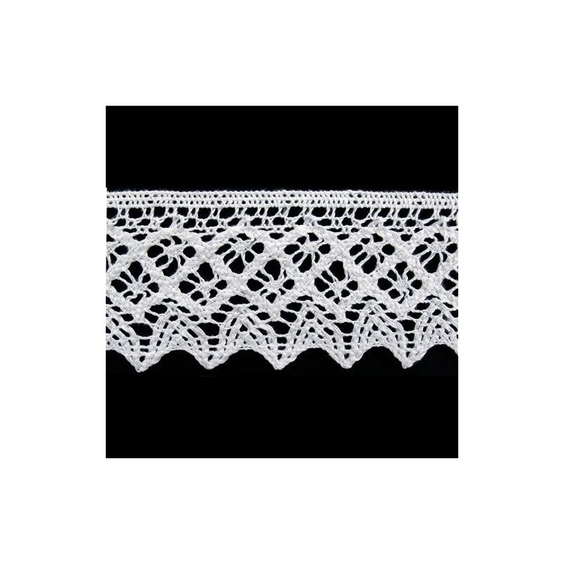 15470 Medvilninis nėrinys art. S10. Plotis - 55 mm, spalva - balta. Parduodamas kiekis kartotinas 1 m.