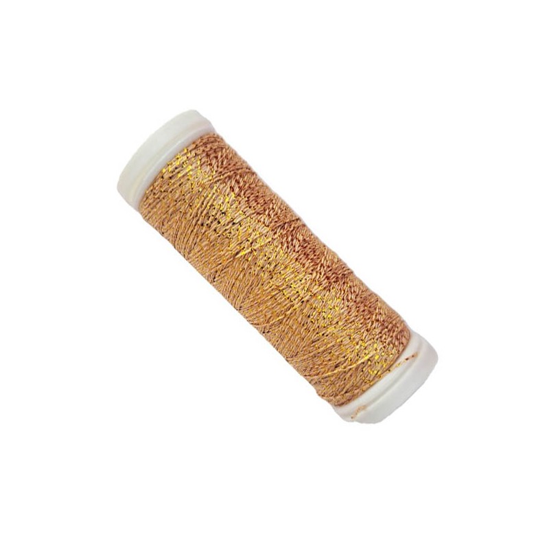 23361 Metalizuotieji siuvinėjimo siūlai "SILVA 30N". Sudėtis: 60% - poliesteris, 40% - metaliniai siūlai. Siūlų storis - 360 dtex. Ritėje - 150 m. Spalva 1894 - aukso.