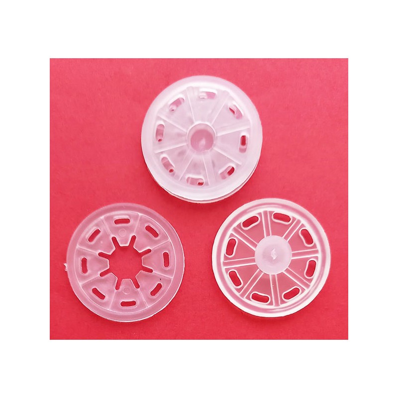 21689 Spaudės plastikinės prisiuvamos, skersmuo 25 mm, spalva - skaidri. Kaina už 1 vnt.