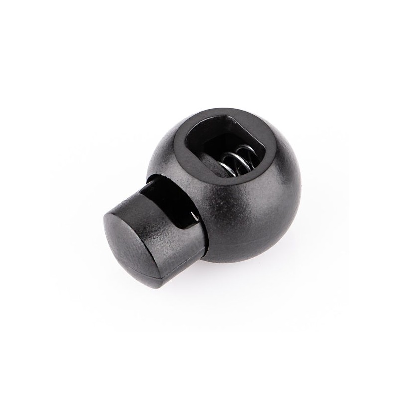 24810 Plastikinis ribotuvas virvutei art. B042. Spalva - juoda. Ribotuvo plotis - 18 mm, storis - 14 mm, aukštis - 23 mm. Kiaurymės dydis - 5 x 8 mm.