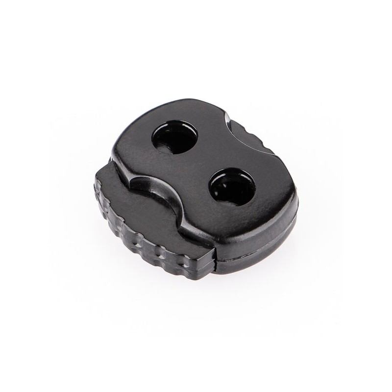 19972 Plastikiniai ribotuvai art.130 (2-jų skylučių). Ribotuvo dydis: plotis - 16,7 mm, aukštis - 13,7 mm, storis - 7 mm. Skylučių skersmuo - 3,5 mm. Spalva - juoda.