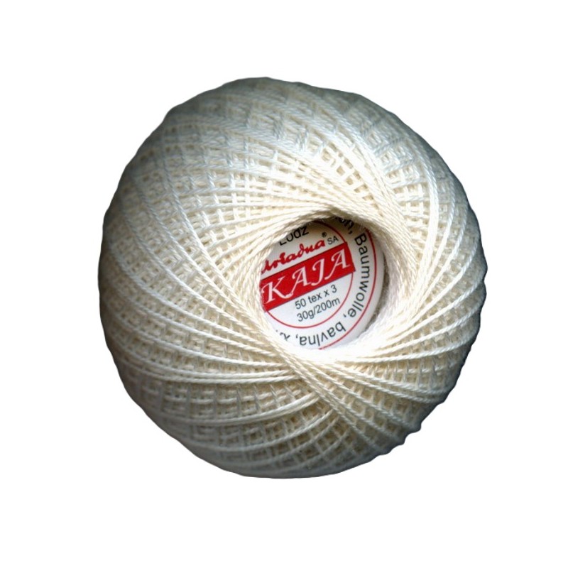 24234 Medvilniniai nėrimo siūlai "Kaja", vienspalviai. Siūlų storis - 50 tex x3, 30g, 200m. Spalva 000 - natūrali medvilnės.