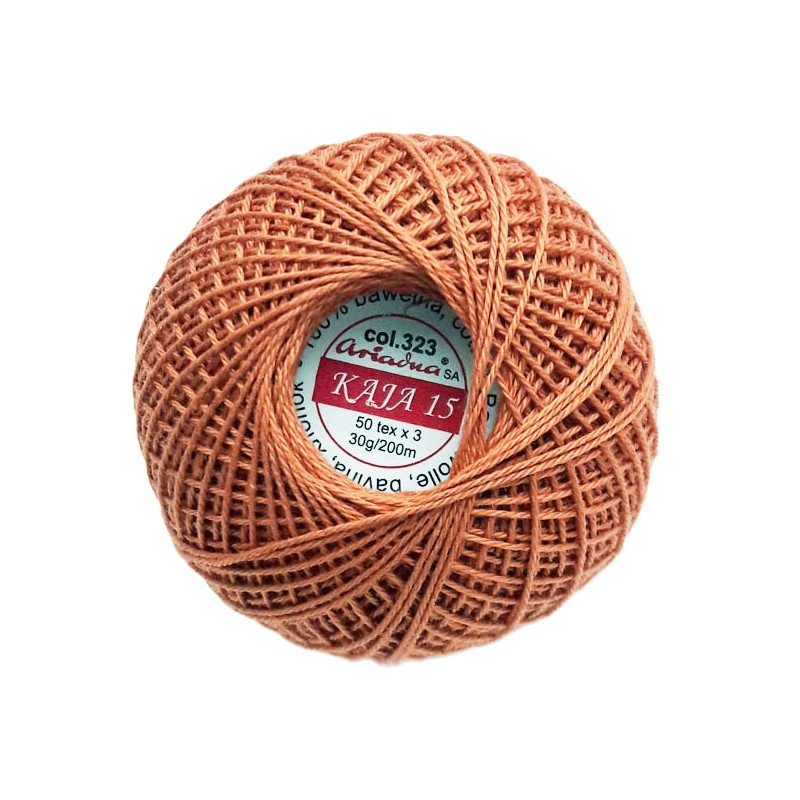 3567/323 Medvilniniai nėrimo siūlai "Kaja"vienspalviai. Siūlų storis - 50 tex x3, 30g, 200m. Spalva 323 - tamsi oranžinė.
