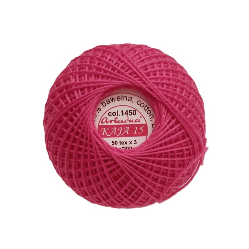 3567/1450 Medvilniniai nėrimo siūlai "Kaja"vienspalviai. Siūlų storis - 50 tex x3, 30g, 200m. Spalva 1450 - avietinė.