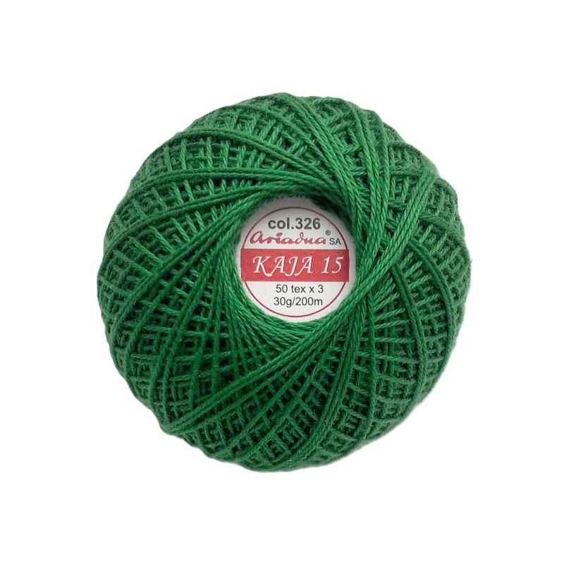 3567/326 Medvilniniai nėrimo siūlai "Kaja"vienspalviai. Siūlų storis - 50 tex x3, 30g, 200m. Spalva 326 - žalia.