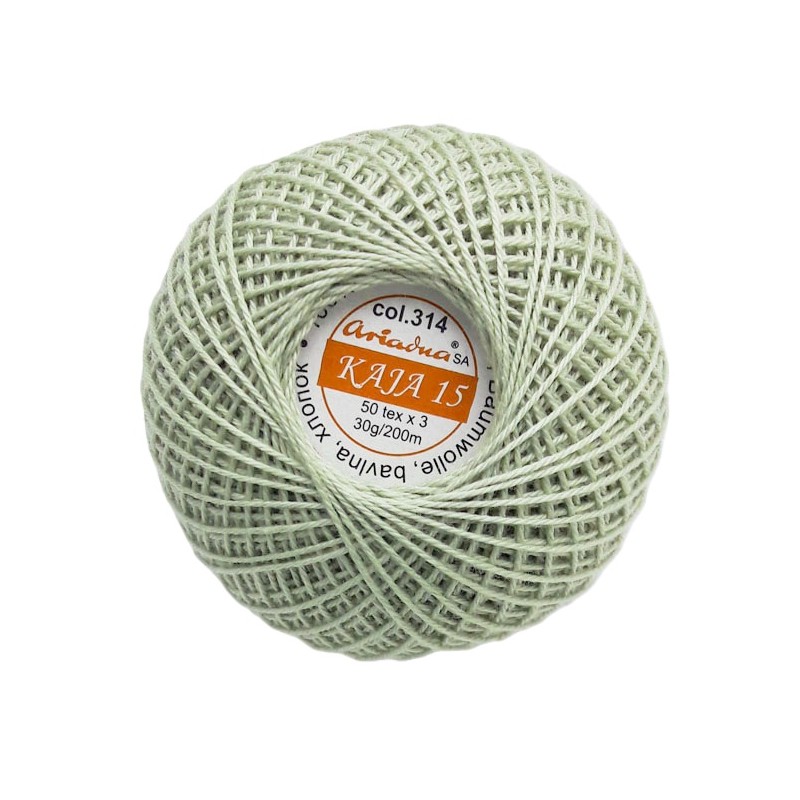 3567/314 Medvilniniai nėrimo siūlai "Kaja"vienspalviai. Siūlų storis - 50 tex x3, 30g, 200m. Spalva 314 - žalsvai pilka.