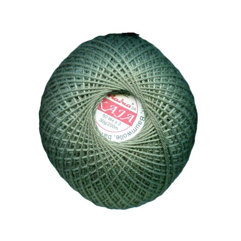 3567/318 Medvilniniai nėrimo siūlai "Kaja"vienspalviai. Siūlų storis - 50 tex x3, 30g, 200m. Spalva 318 - chaki.