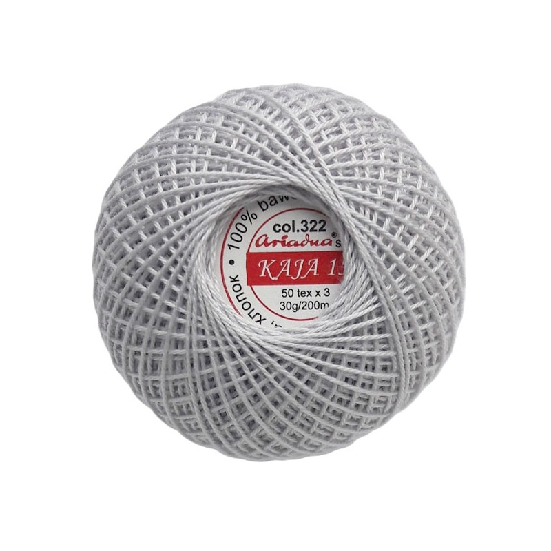 3567/322 Medvilniniai nėrimo siūlai "Kaja"vienspalviai. Siūlų storis - 50 tex x3, 30g, 200m. Spalva 322 - light grey.