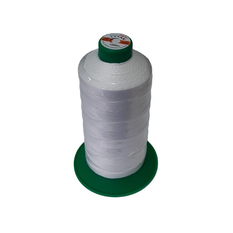 17549 Siuvimo siūlai odai "Tytan 10/1000m". Parametrai: 940/3 dtex, ilginis tankis - 3230 dtex, trūkimo jėga - 16000 cN, rekomenduojamas adatos storis (Nm) - 160-200, spalva balta. Sudėtis - 100% poliesteris.