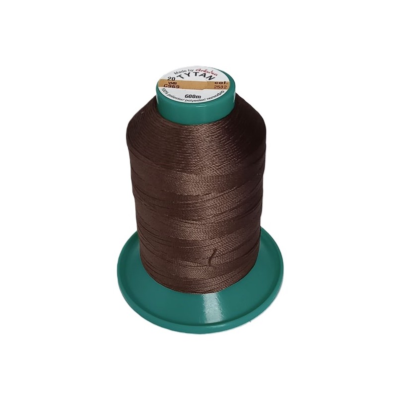 23443 Siūlai odai, avalynei, tentams, turistiniam inventoriui "Tytan 20 WR", ritėje - 600 m, spalva 2532 - tamsi ruda. Sudėtis - 100% poliesteris.