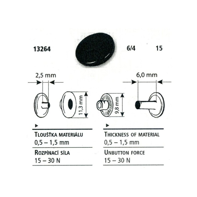 18362 Spaudės "ALFA" 15 mm. Nerūdijančios spaudės, kepurėlės skersmuo - 15 mm, geltona spalva. Pakuotėje yra: spaudžių - 10 vnt., skylamušis - 1 vnt., puansonas - 1 vnt. Tinka medžiagoms, kurių storis 0.5 - 1.5 mm.