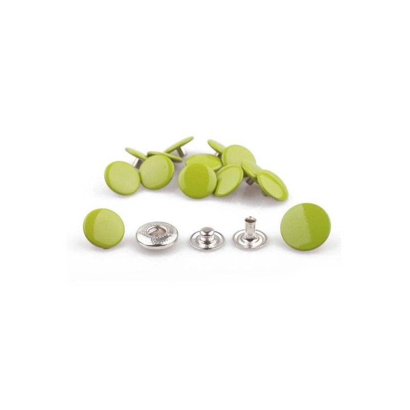 17795 Spaudės su užsegimu ALFA, lakuota kepurėle, nerūdijančios, be nikelio. Kepurėlės skersmuo - 15 mm, spalva - šviesi žalia, užsegimas ALFA 12.5mm, spalva - sidabro.