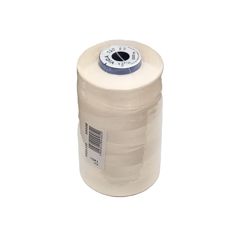 22035 Universalūs siuvimo siūlai VIGA 120 (Nm 40 S/2), sudėtis - 100 % poliesteris, ritėje - 5000 m, spalva 1401 - kreminė.