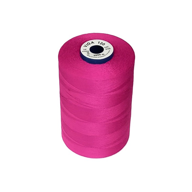 22174 Universalūs siuvimo siūlai VIGA 120 (Nm 40 S/2), sudėtis - 100 % poliesteris, ritėje - 5000 m, spalva 0109 - tamsi rožinė.