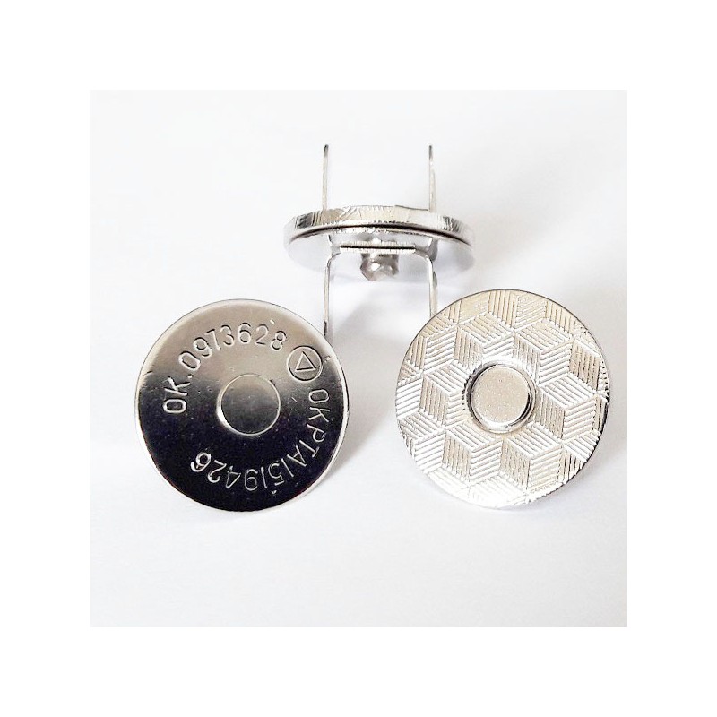 19151 Galanterinis magnetinis užsegimas , skersmuo - 18 mm, storis - 2,3 mm, spalva - nikelio. Kaina už 1 vnt.